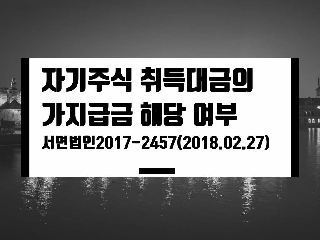 카테고리: 자기주식 취득, 업무무관 가지급금 / 서면법인2017-2457(2018.02.27)에 대해서 정리합니다.