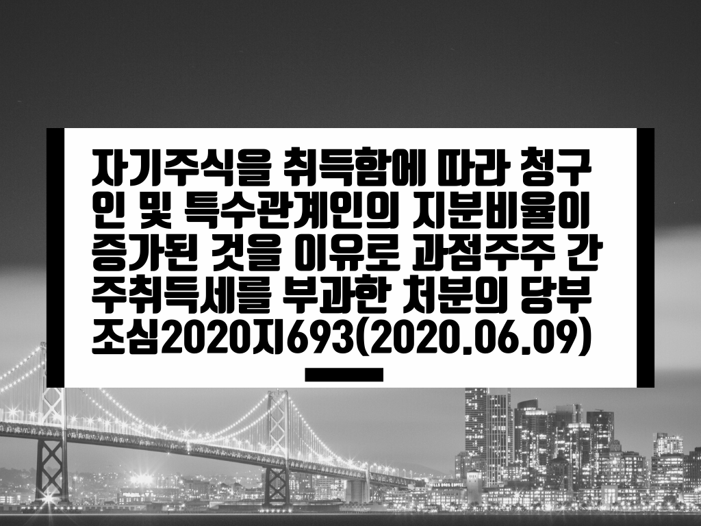 카테고리: 간주취득세, 자기주식, 이익소각 / 조심2020지693(2020.06.09)에 대해서 정리합니다.