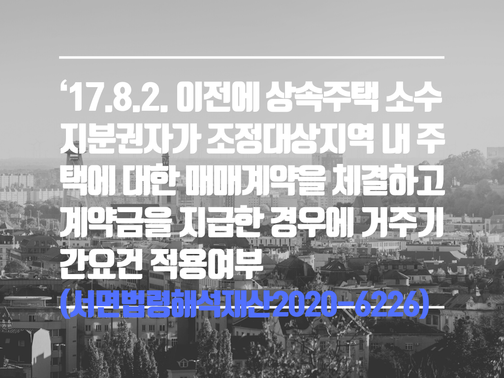[제목] ‘17.8.2. 이전에 상속주택 소수지분권자가 조정대상지역 내 주택에 대한 매매계약을 체결하고 계약금을 지급한 경우에 거주기간요건 적용여부