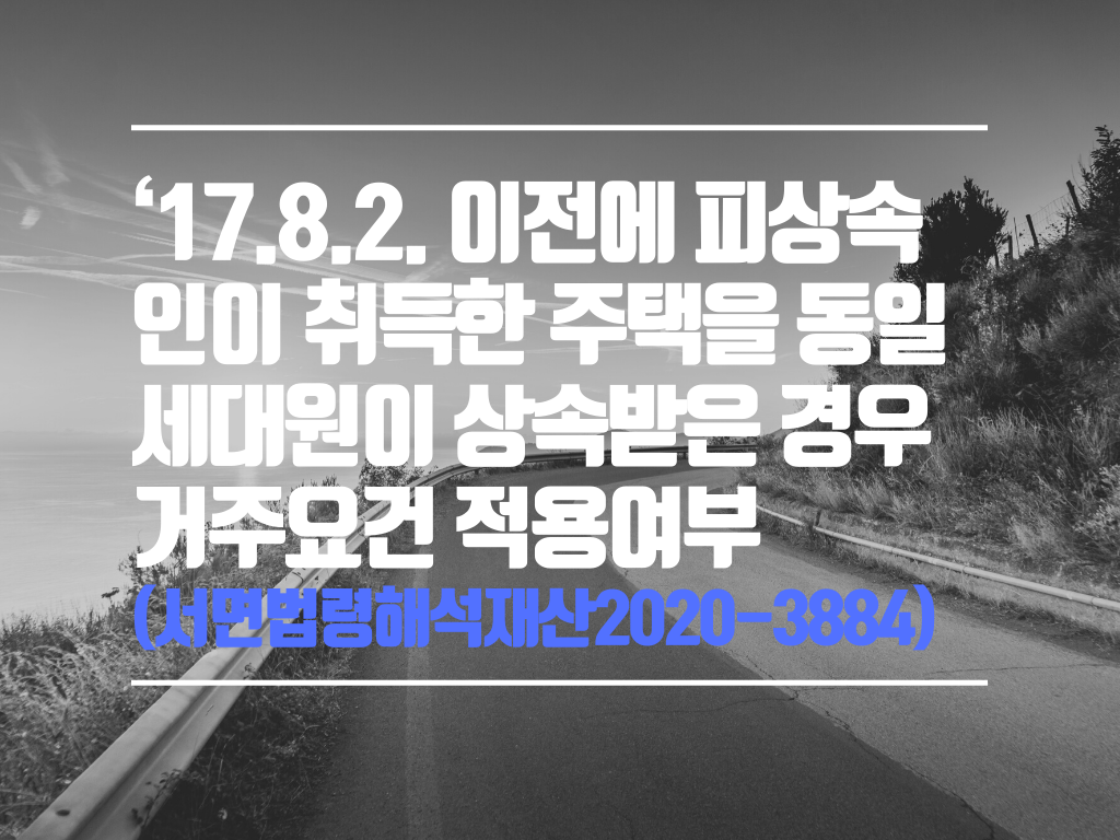 [제목] ‘17.8.2. 이전에 피상속인이 취득한 주택을 동일세대원이 상속받은 경우 거주요건 적용여부