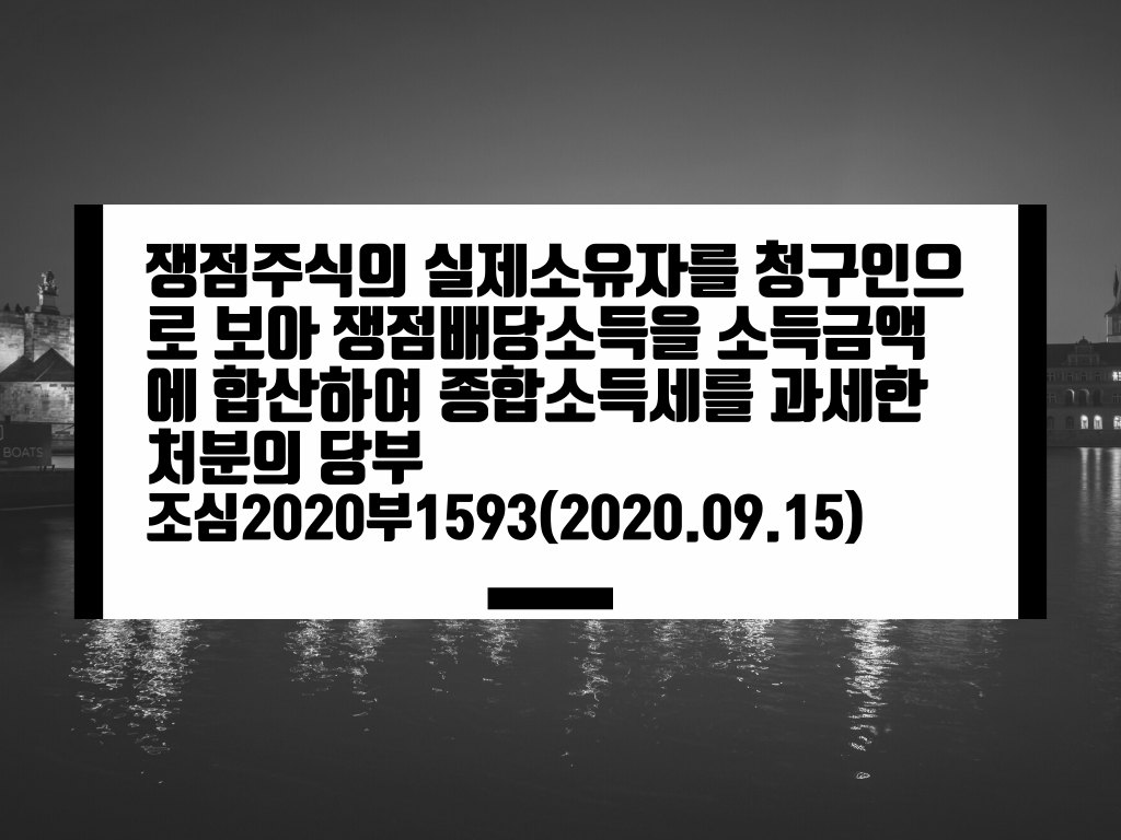 [제목] 쟁점주식의 실제소유자를 청구인으로 보아 쟁점배당소득을 소득금액에 합산하여 종합소득세를 과세한 처분의 당부