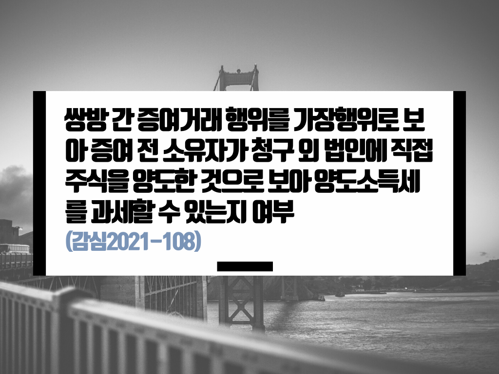카테고리: 쌍방증여, 실질과세원칙 / 감심2021-108(2021.04.05)에 대해서 정리합니다.