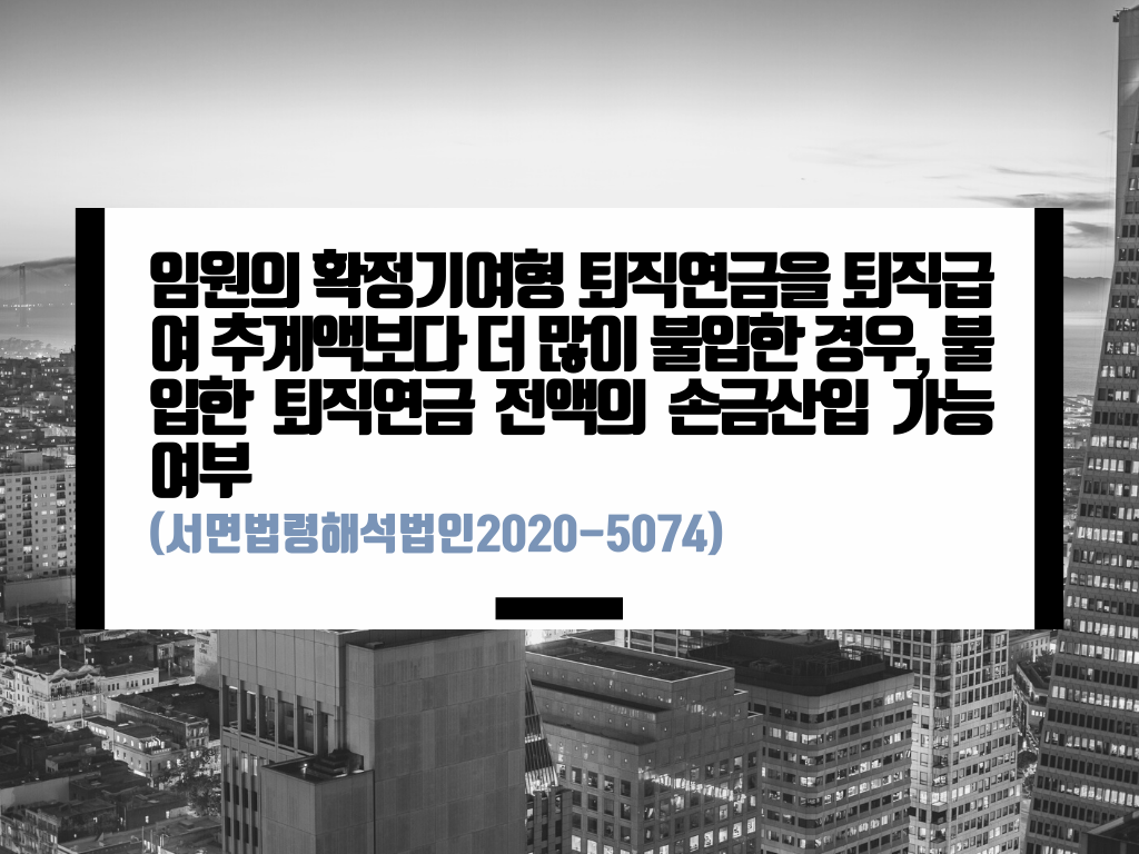 카테고리: 확정기여형 퇴직연금, 손금산입 / 서면법령해석법인2020-5074(2020.12.18)에 대해서 정리합니다.