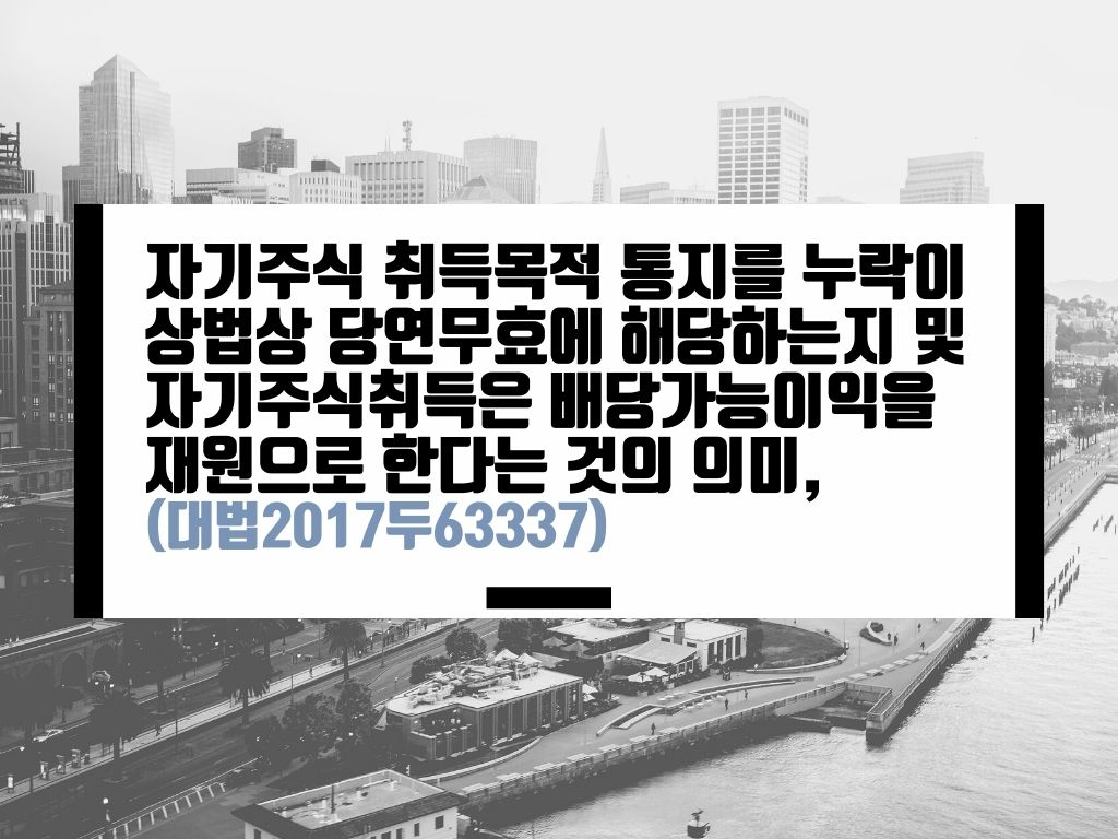 [제목] 자기주식 취득목적 통지를 누락이 상법상 당연무효에 해당하는지 및 자기주식취득은 배당가능이익을 재원으로 한다는 것의 의미