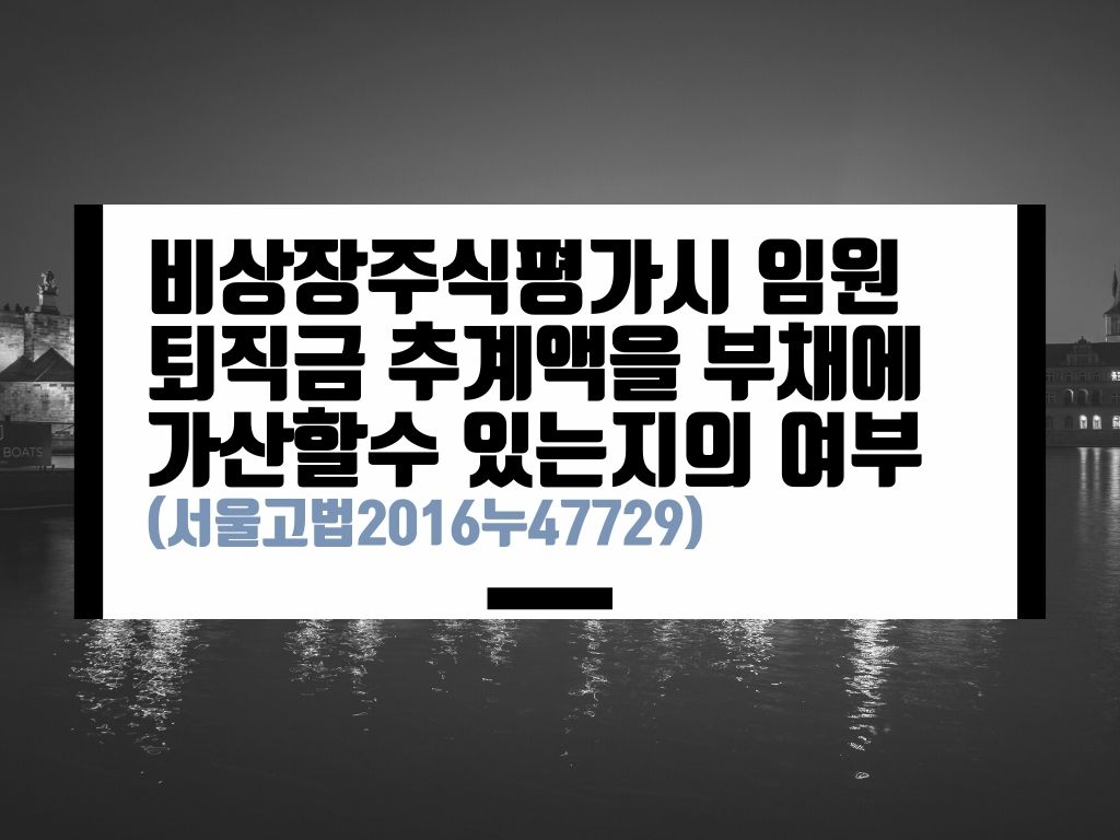 카테고리: 비상장주식평가, 퇴직급여추계액 / 서울고법2016누47729(2016.11.09)에 대해서 정리합니다.