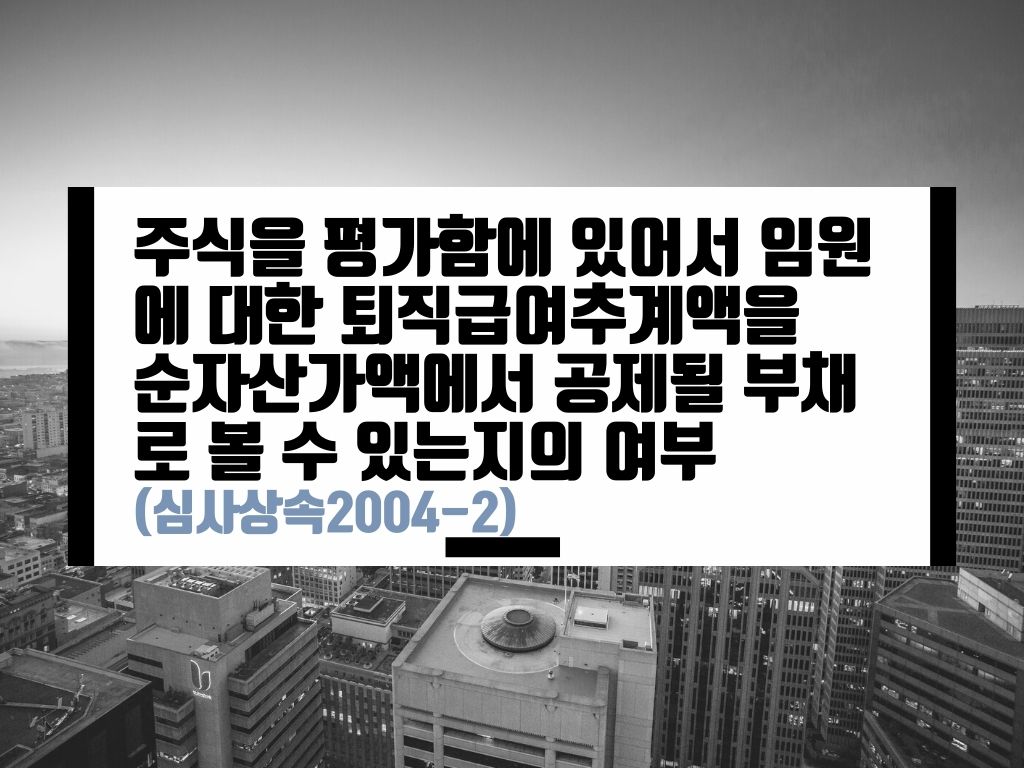 카테고리: 비상장주식평가, 순손익액, 퇴직급여추계액 / 심사상속2004-2(2004.09.09)에 대해서 정리합니다.