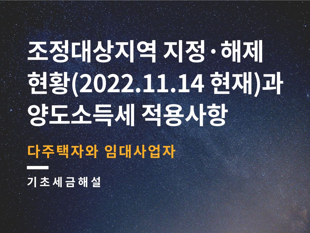 조정대상지역 지정·해제 현황(2022.11.14 현재)과 양도소득세 적용사항