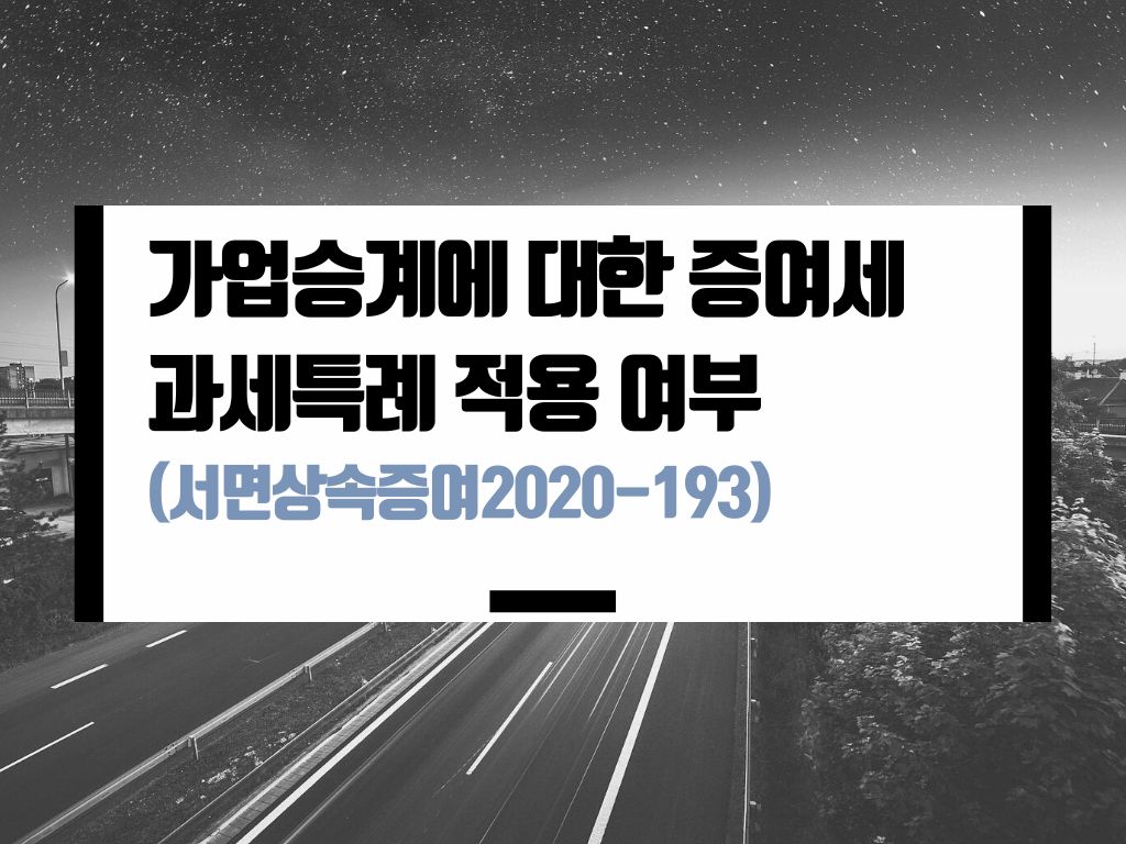 카테고리: 가업상속공제, 증여세과세특례 / 서면상속증여2020-193(2020.05.26) 에 대해서 정리합니다.