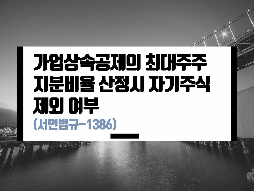 카테고리: 가업상속공제, 자기주식, 최대주주 / 서면법규-1386(2013.12.22)에 대해서 정리합니다.