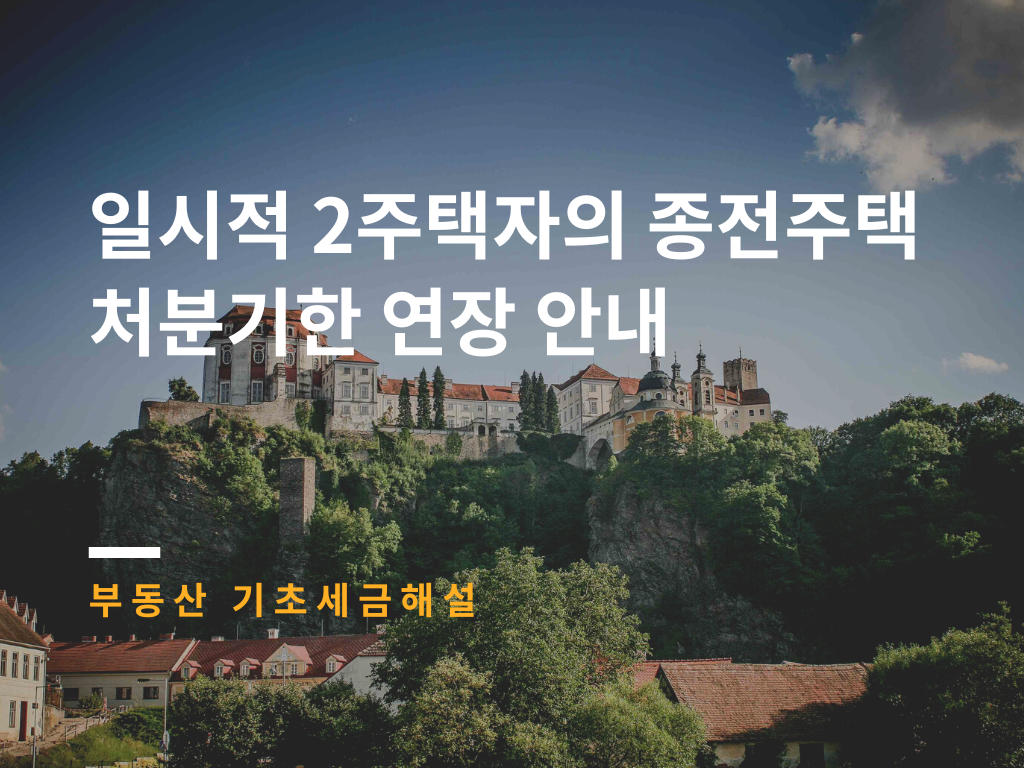 기획재정부가 발표한 "일시적 2주택자의 종전주택 처분기한 연장" 내용에 대해서 아래 정리하도록 하겠습니다.