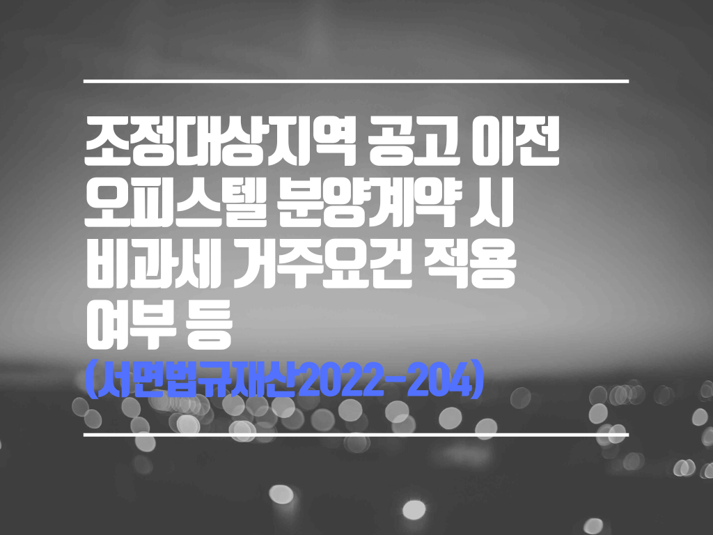 [제목] 조정대상지역 공고 이전 오피스텔 분양계약 시 비과세 거주요건 적용 여부 등