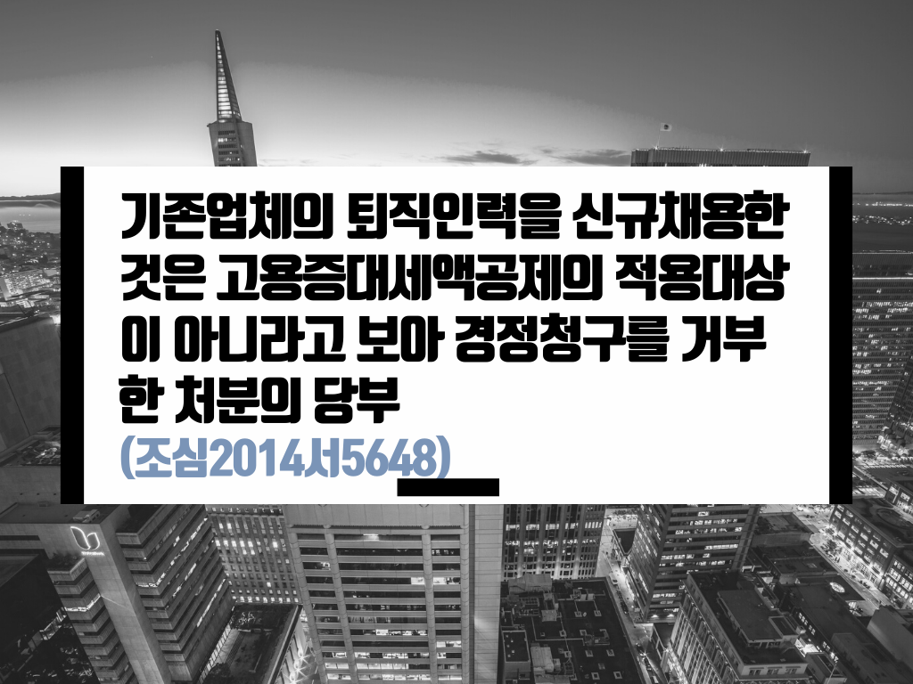 [제목] 기존업체의 퇴직인력을 신규채용한 것은 고용증대세액공제의 적용대상이 아니라고 보아 경정청구를 거부한 처분의 당부