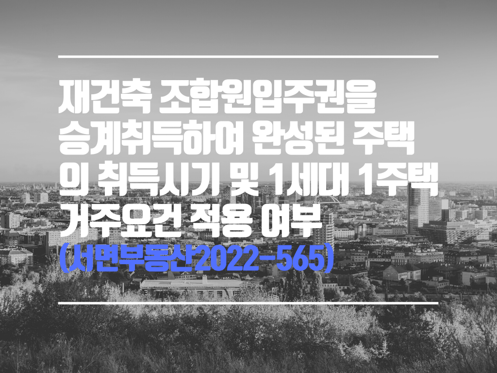 [제목] 재건축 조합원입주권을 승계취득하여 완성된 주택의 취득시기 및 1세대 1주택 거주요건 적용 여부