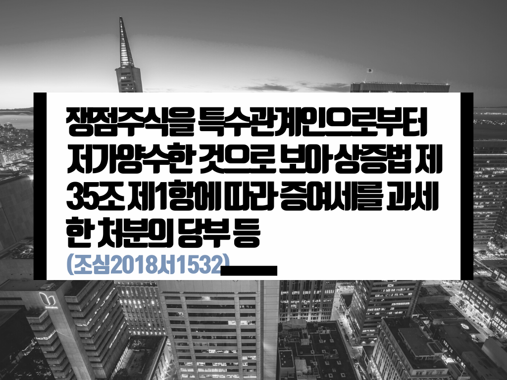 [제목] 쟁점주식을 특수관계인으로부터 저가양수한 것으로 보아 상증법 제35조 제1항에 따라 증여세를 과세한 처분의 당부 등
