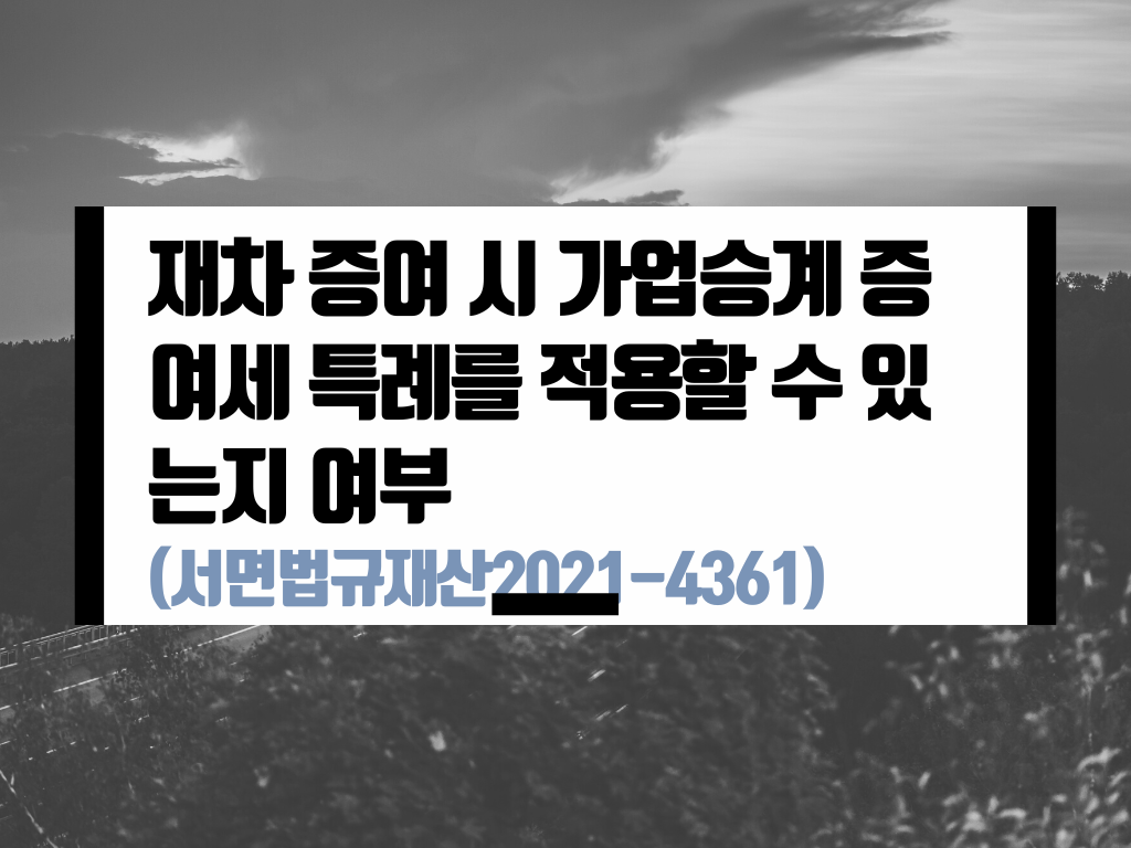 카테고리: 가업승계 증여세 과세특례 / 서면법규재산2021-4361(2022.06.29)에 대해서 정리합니다.