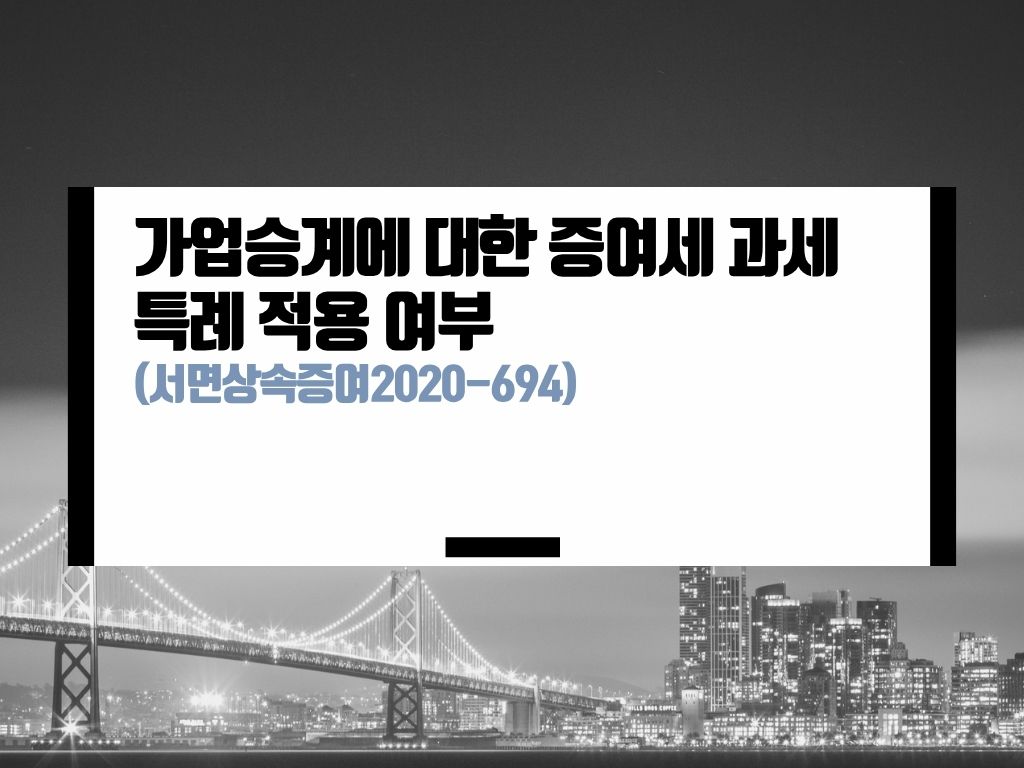 카테고리: 가업승계에 대한 증여세 과세특례 / 서면상속증여2020-694(2020.06.03)에 대해서 정리합니다.
