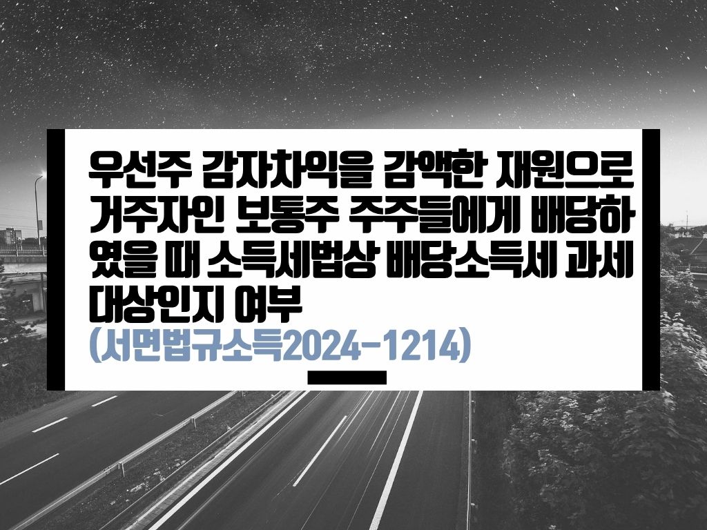 [제목] 우선주 감자차익을 감액한 재원으로 거주자인 보통주 주주들에게 배당하였을 때 소득세법상 배당소득세 과세대상인지 여부